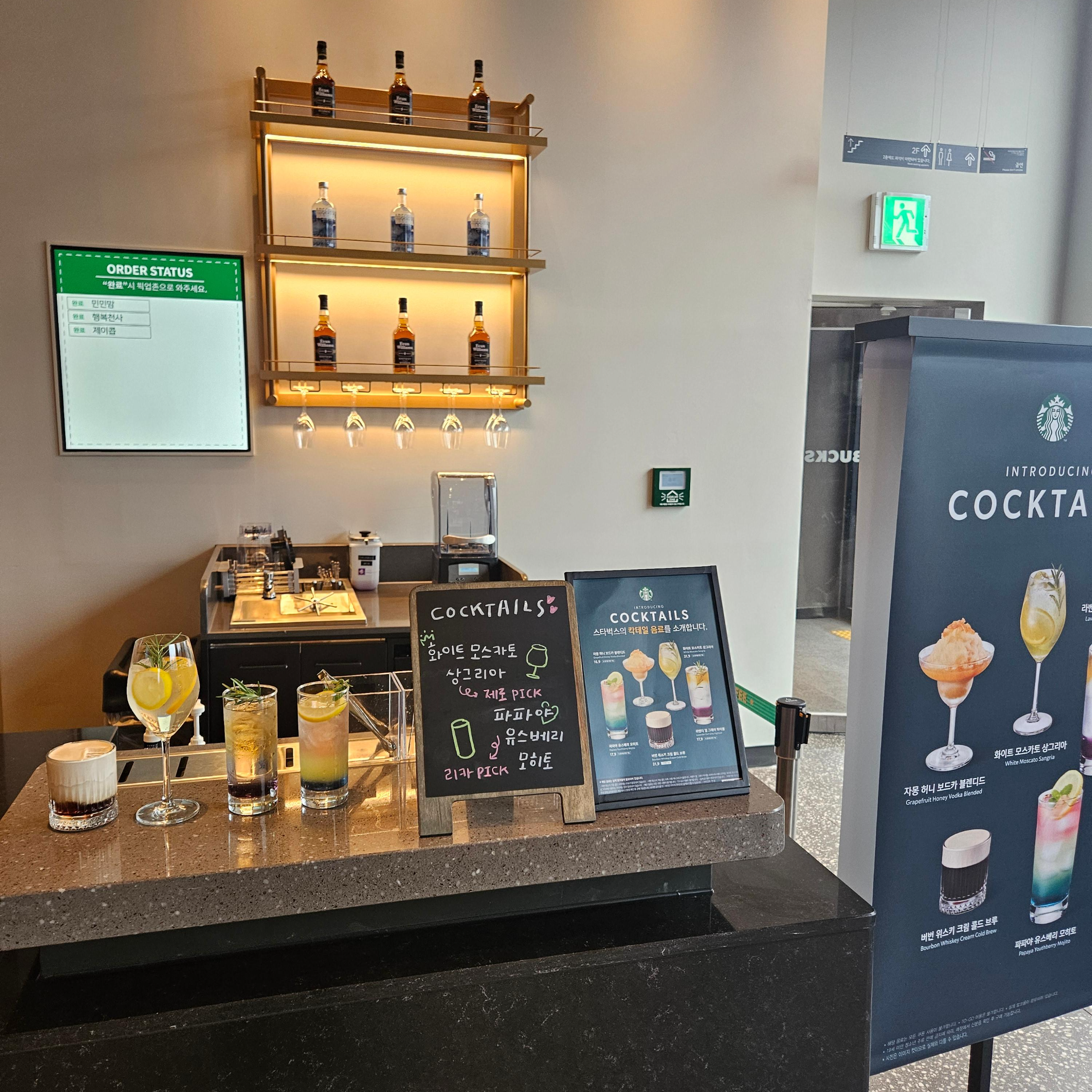 이 매장의 또 다른 특별함은 칵테일과 특화 푸드 메뉴입니다. 일반적인 스타벅스에서는 만나볼 수 없는 주류 음료를 제공하여, 저녁 시간대에는 새로운 분위기를 느낄 수 있습니다. 와인이나 칵테일과 어울리는 간단한 안주 메뉴도 마련되어 있어, 마치 라운지에 온 듯한 기분을 줍니다.